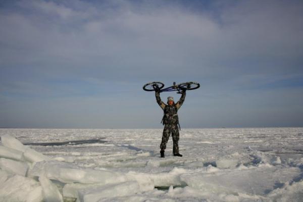 Кому украинские морозы жуть жуткая, а кому развлечение. Когда еще получится по Черному морю на велосипеде прокатиться?
