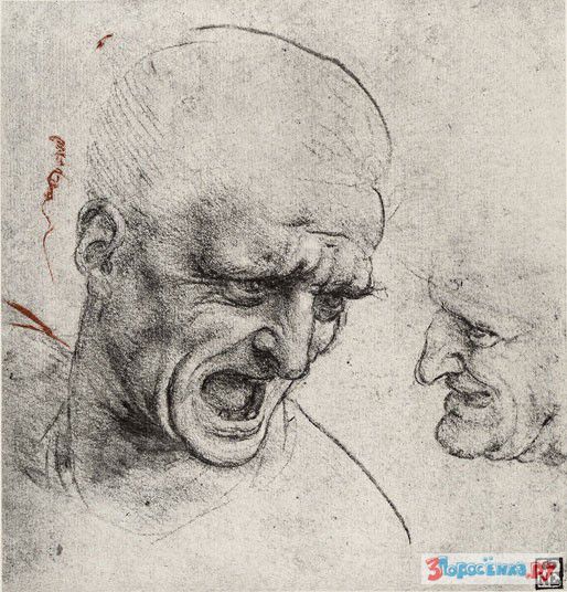 Набросок головы мужчины, сделанный Леонардо да Винчи во время работы над созданием фрески "Битва при Ангьяри".