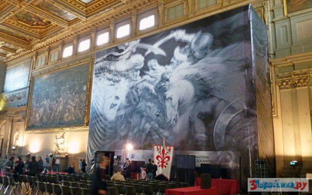 Так может выглядеть фреска, которая скрывается под произведением Джорджо Вазари во флорентийском Палаццо Веккьо.