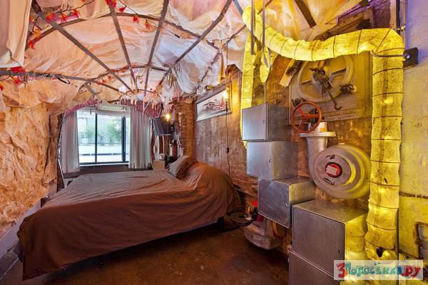 Эта удивительная квартира в стиле стимпанк находится в Нью-Йорке в районе Челси по адресу 120 Уэст 29-ая Стрит. Стимпанк - это жанр, который появился в 1980-ых и начале 1990-ых. Он сочетает в себе элементы научной фантастики, альтернативной истории, хоррора и фантастики в принципе. Действия в мире стимпанк всегда происходят там, где используется паровой двигатель - будь то альтернативная история в викторианскую эпоху или Дикий Запад, а может даже и постапокалиптическое время.