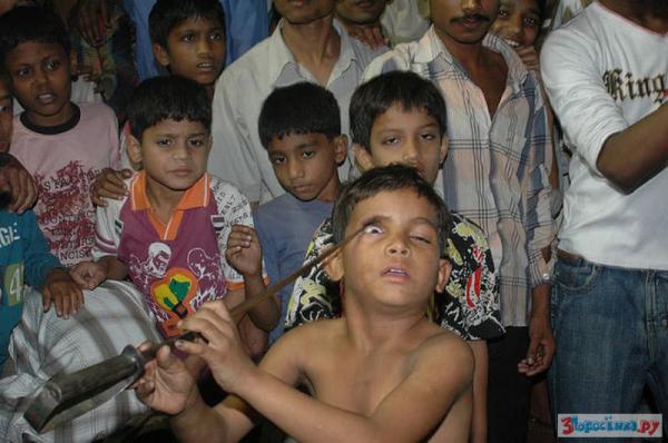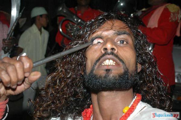 Во время ежегодного суфийского праздника Урс Аджмер, посвященного поминовению святого ходжи XII века Моинуддина Чишти, тысячи факиров и паломников из разных стран проходят шествиями по улицам индийского города Аджмер. Одним из способов публичных самобичеваний, свойственных для Южной и Юго-Восточной Азии, наряду с разного рода самопротыканием, является выковыривание глазных яблок острыми металлическими предметами.