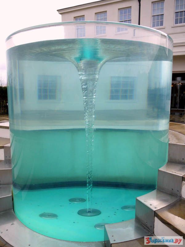 Вокруг цилиндра возвели ступени, чтобы можно было заглянуть внутрь и посмотреть на водоворот сверху. Цилиндр сделали в Гранд Джанкшен, штат Колорадо, США.
