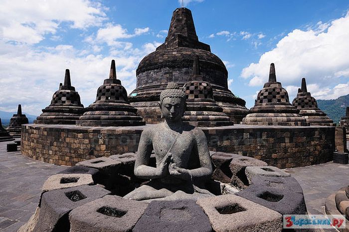 Боробудур был обнаружен в 19-м веке в джунглях острова Явы, Индонезия. Этот священный храм представляет собой удивительную конструкцию, включающую 504 статуи Будды и около 2700 рельефов. Полная история этого храма является тайной, до сих пор не известно, кто точно построил этот храм и с какой целью. Также не известно, почему столь величественный храм был заброшен.