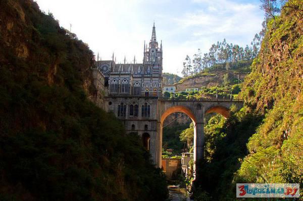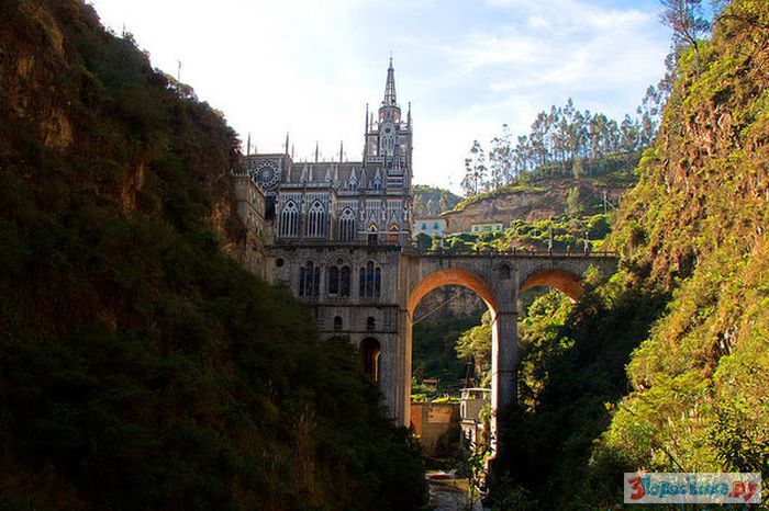 Одно из удивительных по красоте и важных священных мест в мире - церковь Лас-Лахас - была построена всего чуть меньше века назад - в 1916 году - на месте, где по преданию людям явилась Святая Мария. Женщина со своей больной глухонемой дочерью на плечах шла через эти места. Когда она остановилась, чтобы отдохнуть, ее дочь вдруг начала говорить первый раз в жизни и рассказала о странном видении в пещере.