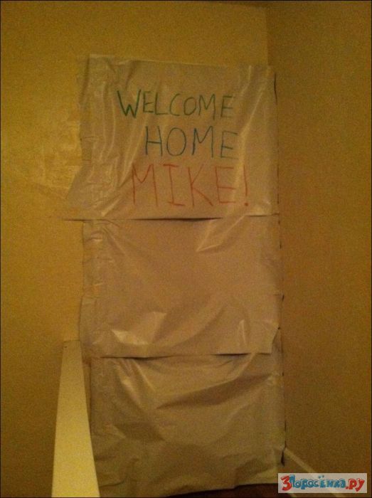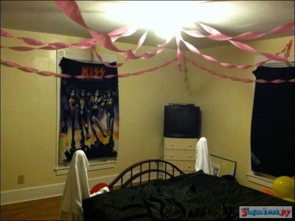 Парень выехал из общежития на выходные, его друзья сразу же принялись за работу, они решили разыграть его.