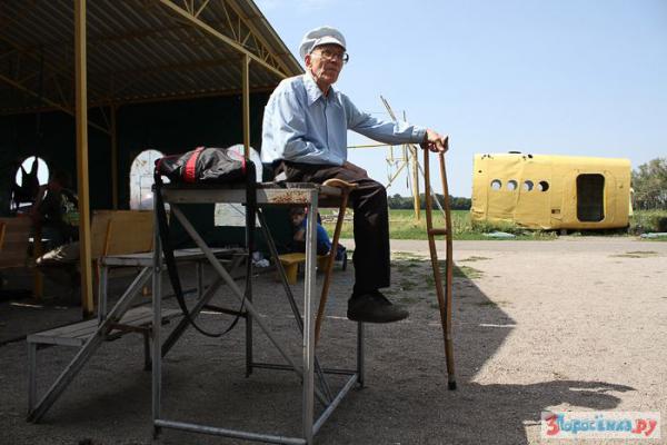 Этот старичок даст фору молодым. В свои 90 лет - Алексей Михеев из Докучаевска (Донецкая область), решил сделать прыжок с парашютом. Все бы ничего, но он потерял ногу под Сталинградом. С отметки 3600, целая минута свободного полета и еще 4 минуты под куполом парашюта.
