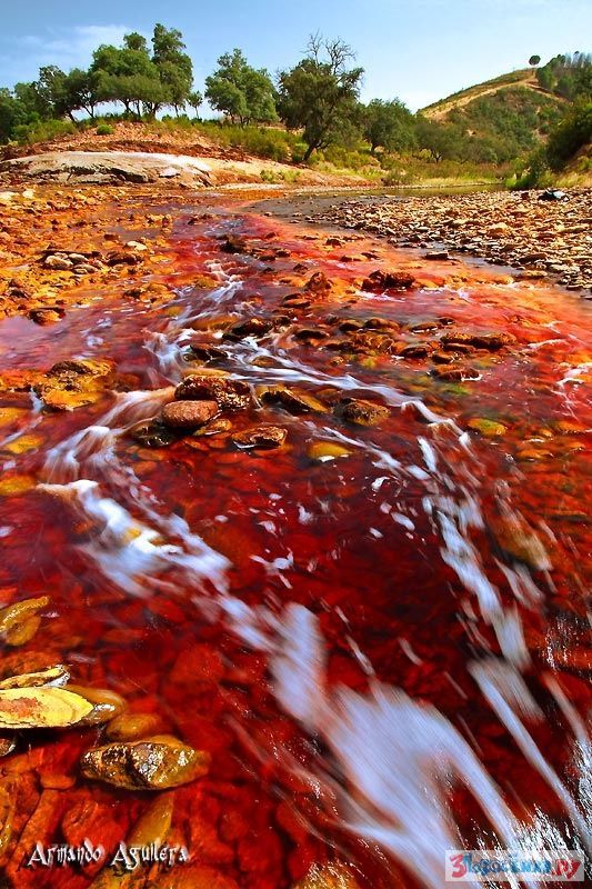 Рио Тинто - река в юго-западной части Испании, берущая начало в горах Андалусии. Начиная с давних времен участки вдоль реки использовались для добычи меди, серебра, золота и других полезных ископаемых. В результате образовалось множество шахт и карьеров причудливой формы, а воды реки окрасились в темно-красный цвет и насытились кислотой и тяжелыми металлами