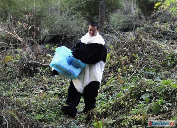 Еще в 2010 году у панды Као Као в зоопарке родился детеныш Тао Тао, которого должны были отпустить на волю, когда он подрастет. Чтобы детеныш не привыкал к человеку, сотрудники зоопарка подходили к нему в костюмах панды. Эксперимент очень уникальный, предлагаю посмотреть фотографии разных лет.