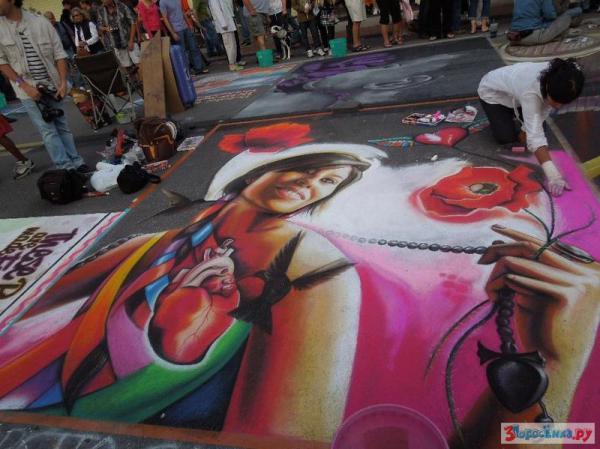 Международный праздник для любителей мелового искусства под названием Sarasota Chalk Festival, прошел в американском городке Сарасота, в штате Флорида. На фестивале присутствовало около ста тысячи зрителей, управлял процессом легендарный мастер 3D-рисунка - Курт Веннера (Kurt Wenner).