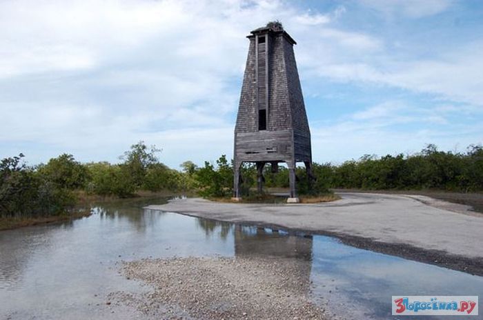 Эта очень известная башня во Флориде. Представьте себе, лето, жара, солнце, вода и... Тучи комаров. Да-да, в США в конце 19 го и до середины 20 го века была проблема с комарами. Представьте себе плотные, черные тучи из мелких, жужжащих тварей, которые гудели без остановки, распространяли малярию, лихорадку и просто жутко раздражали.
