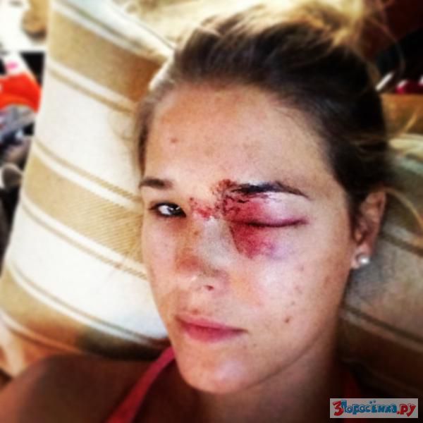 "Что-то мне хреново. Мой дорогой муж зарядил мне в лицо мячом для гольфа. Но я все равно его люблю".