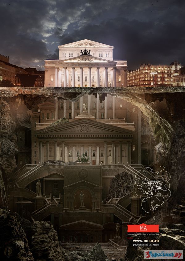 Для Государственного музея архитектуры им. А.В. Щусева российское агентство Saatchi&Saatchi разработало печатную рекламную кампанию. Целью компании является рассказать народу о музее, в котором находятся коллекции, отражающие тысячелетнюю историю архитектурного наследия России. Реклама будет размещена по городу в виде наружной рекламы. На стикерах в метро и в прессе изображены наиболее известные места столицы - Собор Василия Блаженного, здание МГУ на Воробьевых горах и Большой театр.