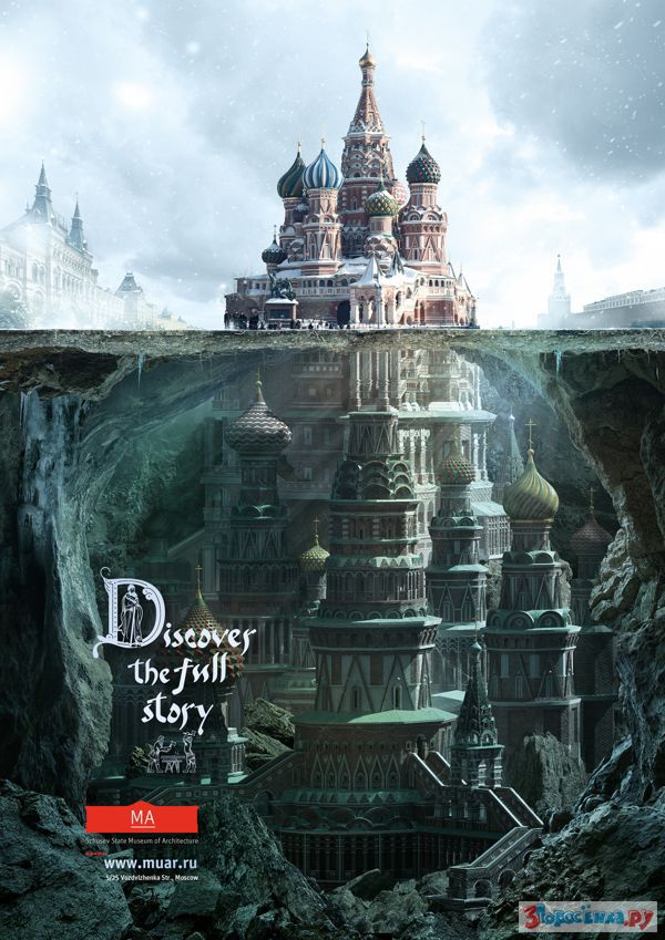 Для реализации идеи в агентстве придумали и достроили на несколько этажей под землю Храм Василия Блаженного, здания МГУ и Большого театра.