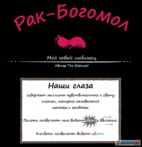 Рак-богомол - одно из самых удивительных созданий подводного мира. Он выглядит просто великолепно и обладает невероятной способностью различать огромное количество цветов, которые не может видеть человек. И при этом рак-богомол - совершенная машина убийства. Он как будто облитый ванильным мороженым Чингисхан.