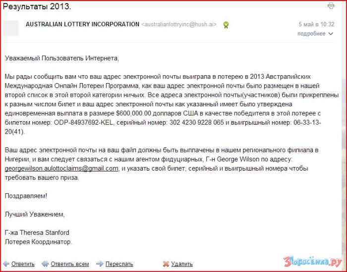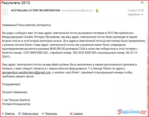 Обезопасить себя от такого "развода" очень просто - достаточно внимательно прочитать послание, навести в интернете справки о "лотерее" и ни в коем случае не отдавать просто так деньги незнакомым людям.