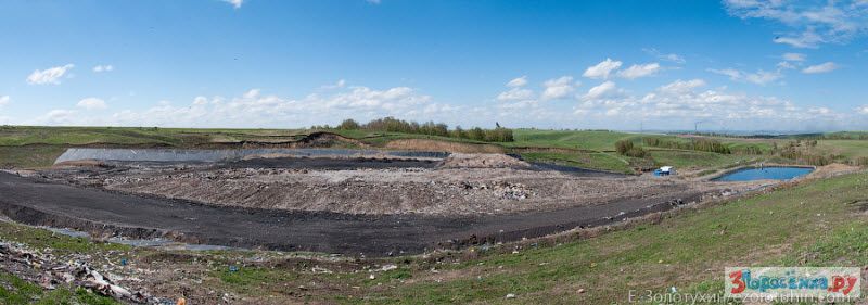 А вот и сам полигон для захоронения. Слои полигона уложены в следующем составе: гидроизолирующая геомембрана из полимерной пленки, защитный слой суглинка и дренажный слой из щебня толщиной 30 см. Наиболее серьезным загрязнителем окружающей среды является фильтрат - жидкие выделения крайне неприятного запаха. Фильтрат здесь фильтруется и в итоге превращается в обычную прозрачную воду.
