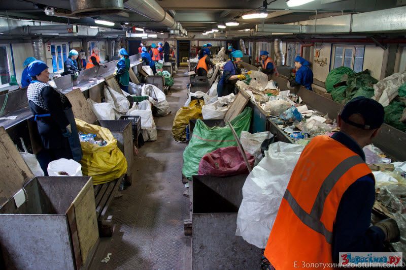 После сепараторов мусор попадает в цех ручной сортировки. Здесь производится выборка материалов для вторичного использования: полимерные материалы, картон, бумага, стекло, черные и цветные металлы. Всего на переработку здесь уходит 6% от общего объема мусора, но и это лучше чем ничего