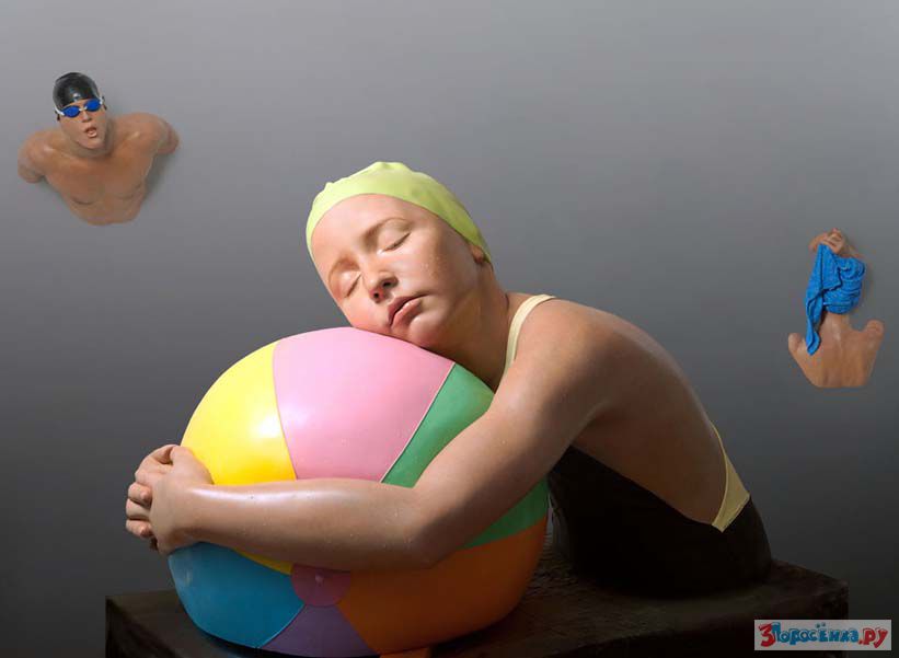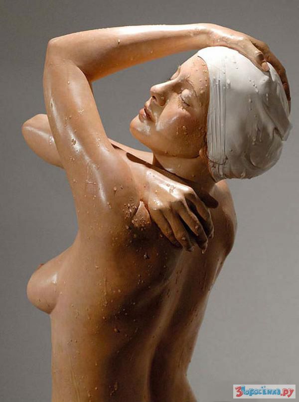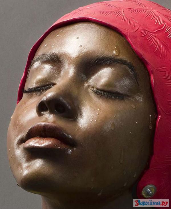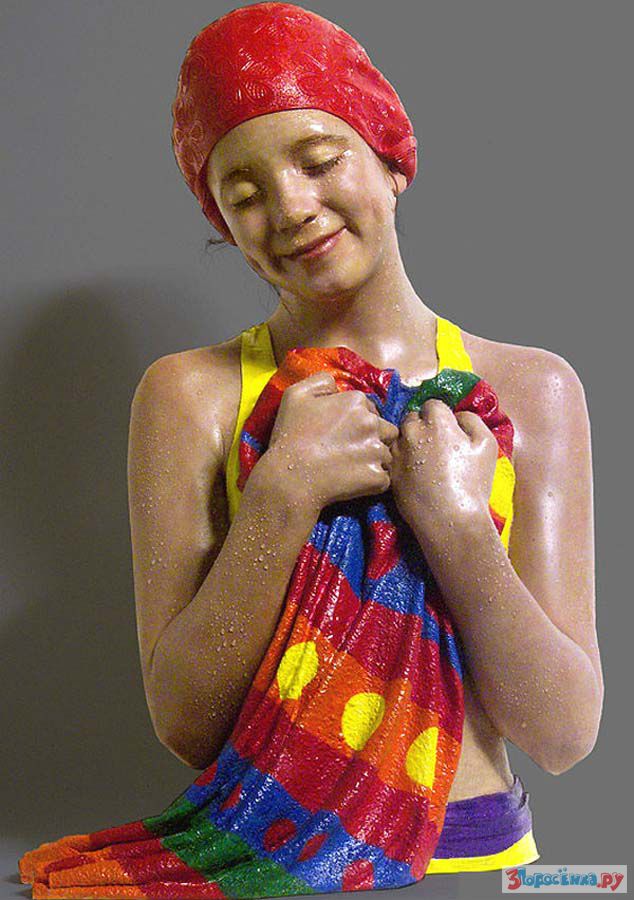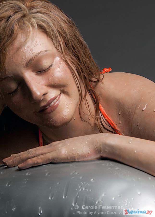 Нью-Йоркский скульптор Кэрол Фейерман создает из смолы и масляных красок потрясающие своей гиперреалистичностью скульптуры мокрых людей. Кэрол Фейерман (Carole Feuerman) является всемирно известным и признанным скульптором. Ее заслуги больше всего почитаемы на родине, в Америке. Вот уже больше сорока лет она успешно управляет компанией, созданной также собственными руками - Feuerman Studios Inc, где не только творит и представляет свои работы, но и выделяет место под солнцем, рядом с собой, и для других художников. Ее имя включено в "An American Odyssey 1945-1980", то есть Фейерман признана выдающимся американским художником послевоенной эпохи. Ее работы выставлялись в самых знаменитых музеях мира, к примеру, Мадридском Прадо и Санкт-Петербургском Эрмитаже.