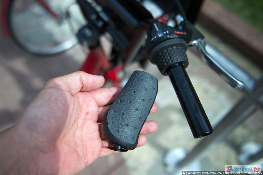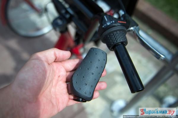 11. Резиновые накладки на руле тоже снимаются без проблем. На многих велосипедах их уже украли. Зачем они кому-то нужны - непонятно. Хотя, зачем выламывать сиденье на велосипеде тоже не ясно. Есть у нас альтернативно одаренные люди, к сожалению.