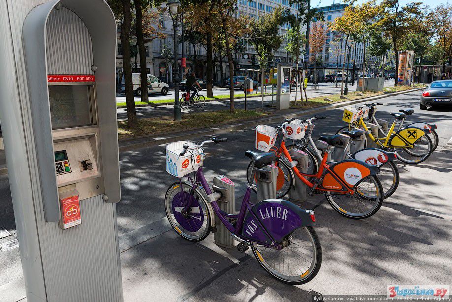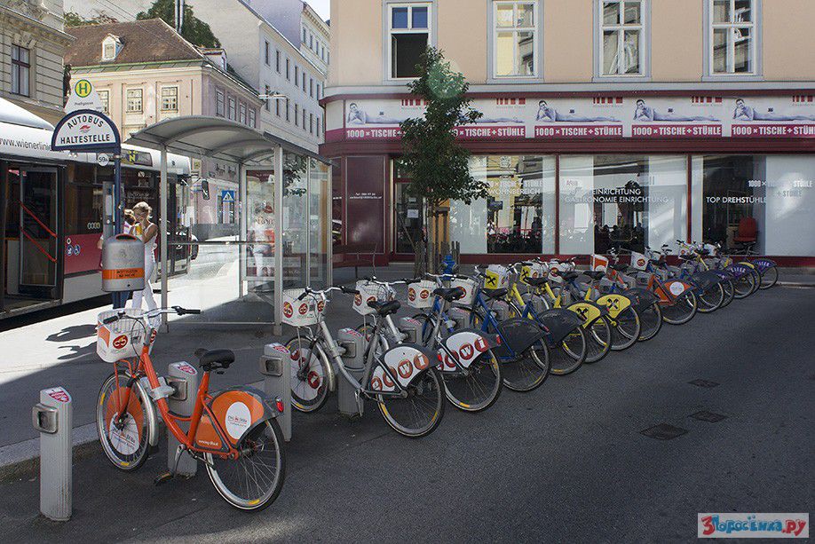 24. В Вене, в отличие от других городов, велопрокат спонсируют разные компании, поэтому все велосипеды разные.
