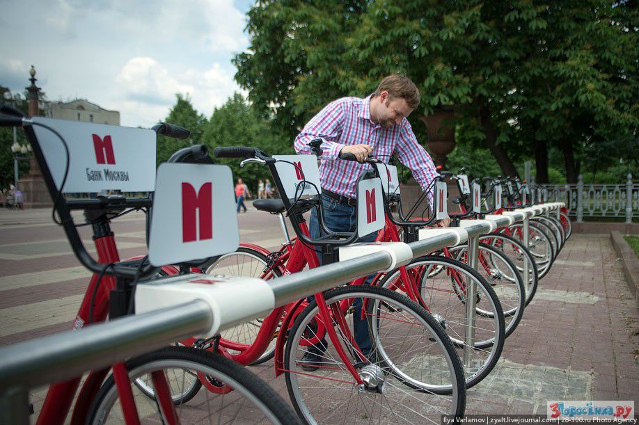 Пишет Илья Варламов aka zyalt: "Наконец в Москве открылся городской велопрокат. Для тех, кто был в Европе или США, эти система хорошо знакома, есть она во всех крупных городах: Лондон, Вашингтон, Париж, Вена, Барселона и т.д. По сути, городской велопрокат - это скорее новый вид городского транспорт. В городе установлены прокатные парковки с велосипедами, вы можете взять его в оном месте, а вернуть в другом. Все автоматически и делается за считанные минуты. Чем меньше вы пользуетесь велосипедом, тем он дешевле. Например, первые 30 минут бесплатны, час стоит 30 рублей, два часа уже 90, а если вы катаетесь больше 6 часов, то придется заплатить 1500 рублей! Смысл в том, чтобы велосипеды использовались для поездок из одной точки в другую, а не для прогулок по городу. В Москве парковки появились на Бульварном кольце. Если эксперимент пройдет удачно, то в следующем году географию расширят.