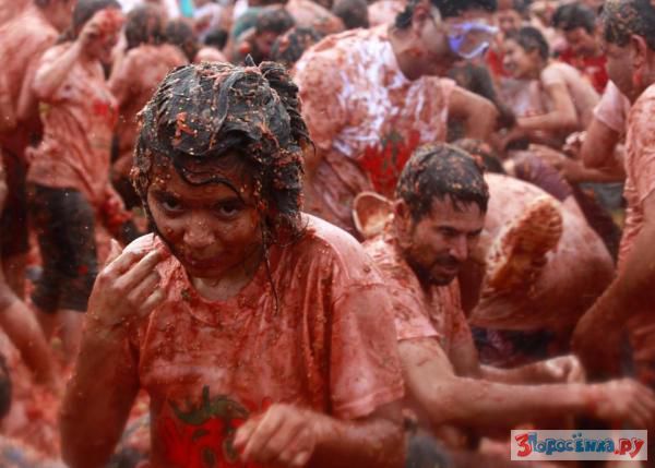 В городе Сутамарчан, что в провинции Бояка, Боливия, прошли традиционные помидорные бои, которые здесь называются "Tomatina". Сотни людей потратили тысячи помидоров на то, чтобы измазать ближнего своего и превратить этот вкусные продукт в невообразимую кашу. Впрочем, судя по всему, было весело.