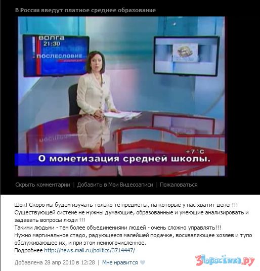 Тысячи пользователей принимают эту информацию за чистую монету, убежденные в ее достоверности от администрации группы, а если еще и репортаж по государственному каналу показали, то сомнений в инстинности не остается никаких.