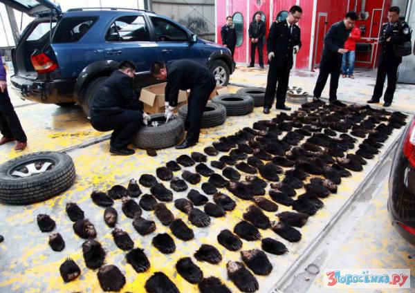 Сотрудники таможенной службы в Маньчжурии в автономном регионе Внутренней Монголии на севере Китая задержали двоих россиян с крупнейшей контрабандной партией медвежьих лап.