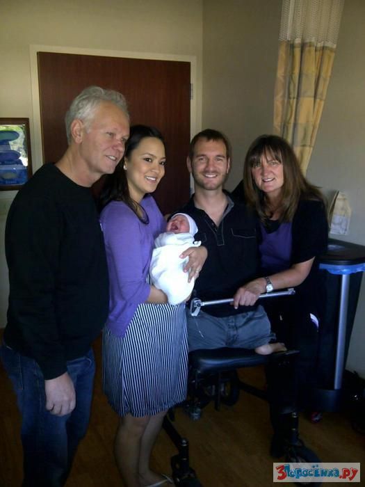 Счастливые родители получают сотни тысяч поздравлений от людей со всего мира, ведь Ник Вуйчич на собственном примере убедительно доказывает, что для того, чтобы жить полной жизнью, достигать успеха в карьере и личной жизни, не обязательно быть похожим на остальных.