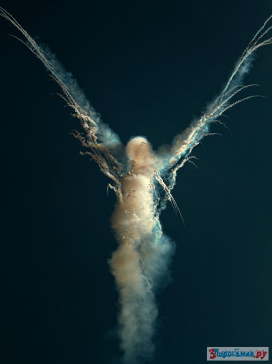 К 75-летнему юбилею "Русские Витязи" нарисовали ангела в небе.