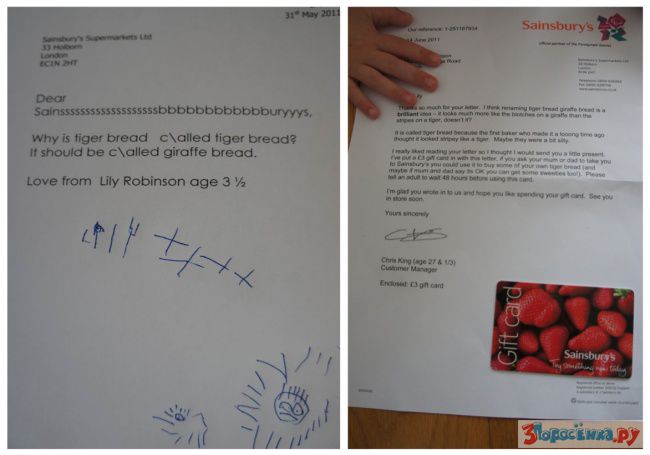 Однажды в офис сети супермаркетов Sainsbury's пришло письмо от некой Лили Робинсон. Содержание его было таково: