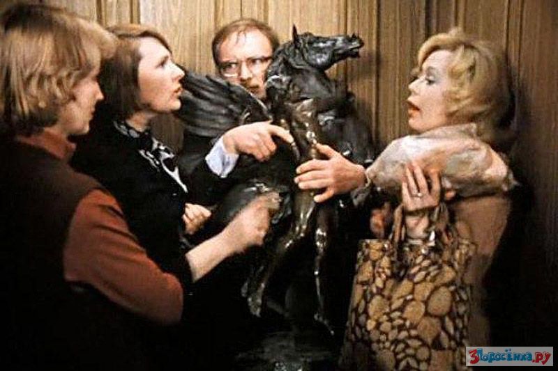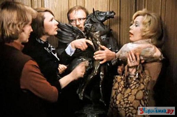 Еще один интересный момент: бронзовый конь, которого переносит Новосельцев, ранее был задействован в фильме Леонида Гайдая "Бриллиантовая рука", он же показан в одной из серий телефильма "Семнадцать мгновений весны", в фильмах "Формула любви" и "Старый Новый год". Позже этот же конь появится в фильме Владимира Меньшова "Ширли-мырли", снятом уже после распада СССР.