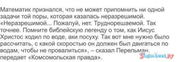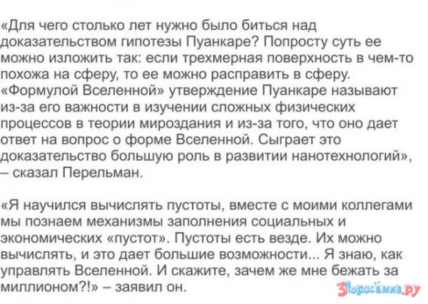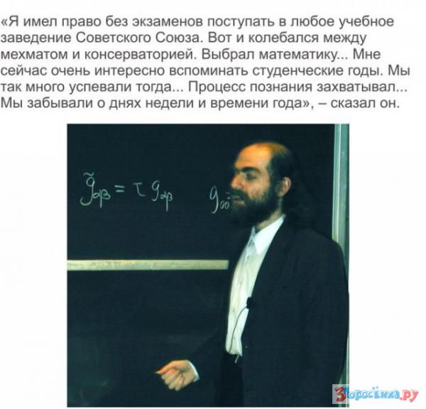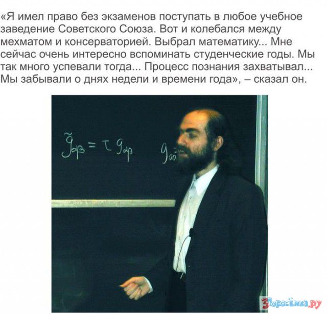 Несколько интересных фактов из биографии выдающегося математика Григория Яковлевича Перельмана, которому удалось доказать гипотезу Пуанкаре, над которой бились десятки ученых во всем мире.