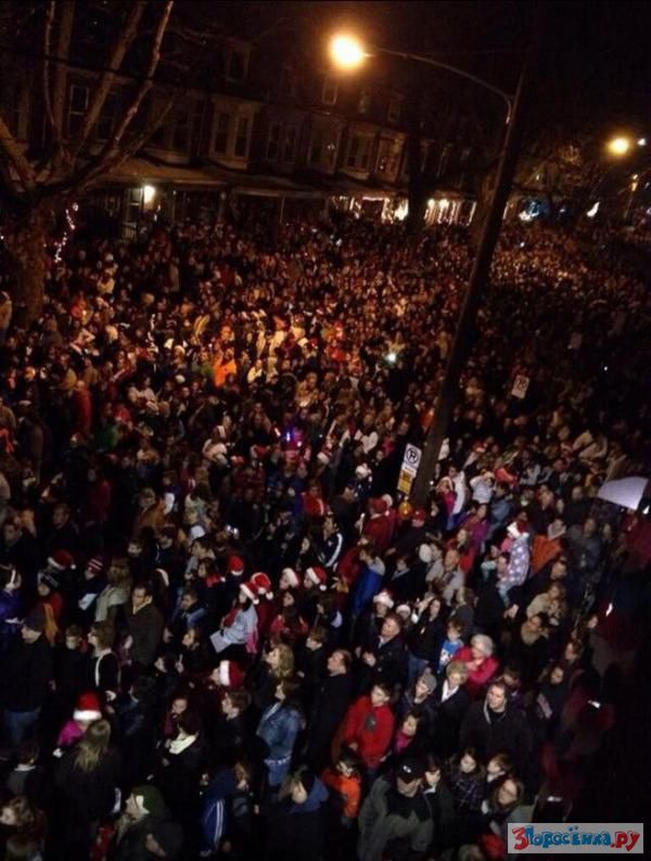Вечером 21 декабря тысячи людей собрались на улице возле дома 8-летней Дилэйни Браун, чтобы исполнить для нее рождественские колядки. Девочка страдает острым миелолейкозом, и ее состояние быстро ухудшается.