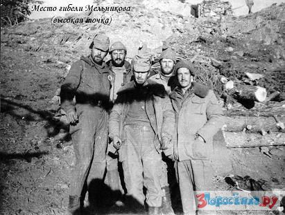 'Все атаки душманов были хорошо организованы. К нам на подмогу пришли другие взвода роты, пополнили наш запас боеприпасов. Наступило затишье, вернее угомонилась стрельба. Зато поднялся сильный ветер, стало очень холодно. Я спустился вниз под скальник, где находились только что пришедшие товарищи. В это время началась самая страшная и самая жуткая атака. Было светло от разрывов 'граников' (гранат от РПГ-7). Душманы вели шквальный огонь с трех направлений. Они вычислили наши позиции, и вели сосредоточенный огонь из гранатометов по месту, где находился ряд. А. Мельников с пулеметом. Духи выпустили туда пять или шесть гранат. Он уже мертвый прибежал вниз. Упал замертво, не произнеся ни слова. Он с самого начала боя вел огонь из пулемета, как с нашего направления, так и с того, где получил смертельную рану.