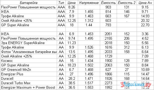 7. Самые выгодные батарейки - Ikea и FlexPower, но они продаются только в магазинах Икеа и Ф-центр соответственно.