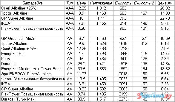 Upd.: Табличка, отсортированная по стоимости ампер-часа показывает, какие батарейки самые выгодные.