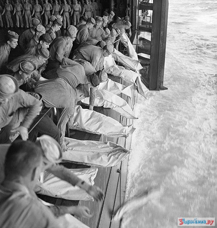 Согласно законам британского флота, при погребении в море тело зашивали в мешок. Последний стежок должен был обязательно проходить через губы покойного, чтобы быть уверенным, что человек действительно умер.
