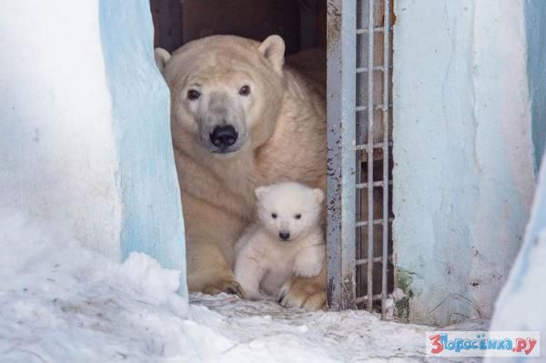 Интересно, что в дикой природе беременные белые медведицы впадают в спячку на 50-80 дней. Детёныш рождается именно в это время, и, как правило, первые три месяца мама с новорождённым проводят в укрытии.