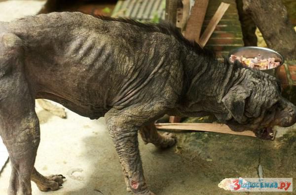 Совсем еще крошечный ротвейлер был найден блуждающим по улицам Тайваня два года назад, Сам пёс находился в опасной близости от смерти - всё его тело было усеяно язвами и почти отсутствовала шерсть. Добрые люди подобрали несчастного пёсика и решили его вылечить.