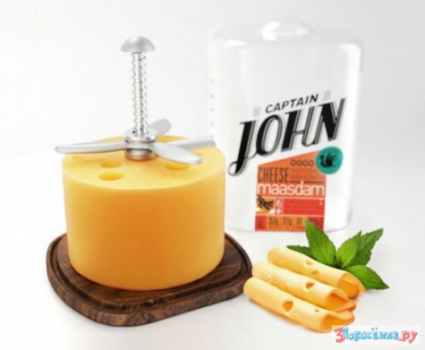 Порезать сыр аккуратными ломтиками - большое искусство, подвластное настоящим асам. В упаковку сыра "Captain John" дизайнеры Галима Ахметзянова и Павла Чуйкина встроили нож. Небольшой поворот пропеллера и сыр нарезается тонкими пластинками