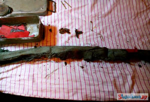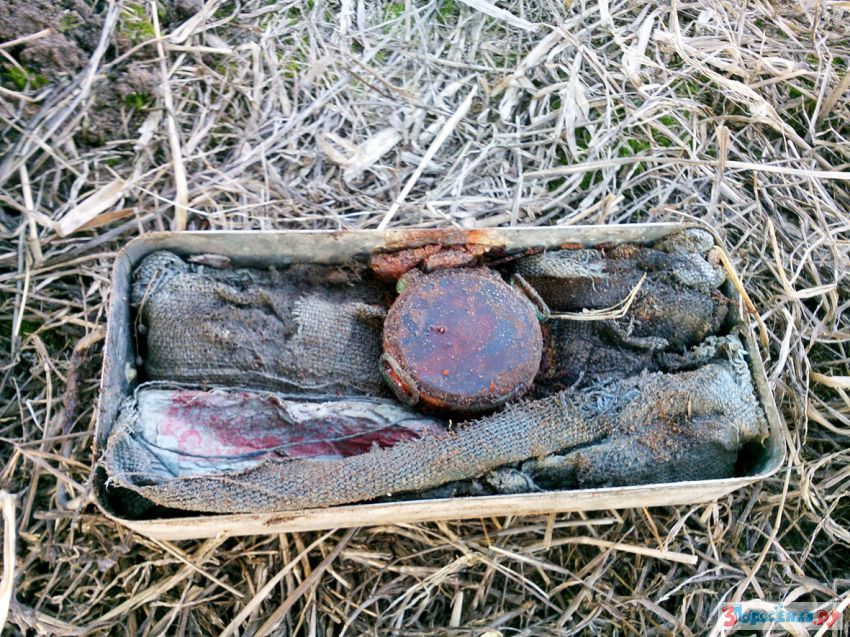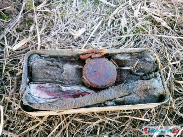 Через пару минут на поверхность земли был извлечен старый хромированный медицинский стерилизатор для шприцов.