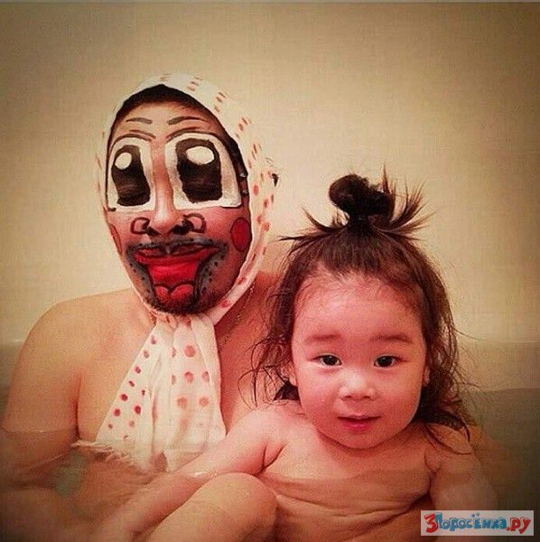 Многие родители готовы пойти на что угодно лишь бы заставить своих детей, делать вещи, которые им не очень нравится, например: принять лекарство, кушать, ложиться спать, и конечно же принимать ванну. Веселый и креативный папа по имени Тихиро устраивает для своей маленькой дочки настоящий маскарад в ванной, чтобы она принимала водные процедуры с удовольствием. Предлагаем вам посмотреть на косплей папы Тихиро, устроенный им в ванной для своей милой дочери.