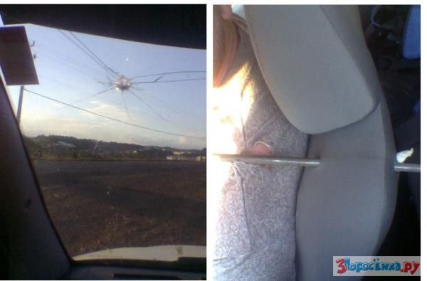 рузчики зачастую пренебрегают своими обязанностями и закрепляют груз кое-как. И подобная халатность ставит под угрозу жизнь водителей, если речь не идет о подушках, конечно. В салон автомобиля этого мужика прилетел кусок арматуры, вывалившийся из грузовика, ехавшего впереди. Такое удивительное везение редко встретишь.