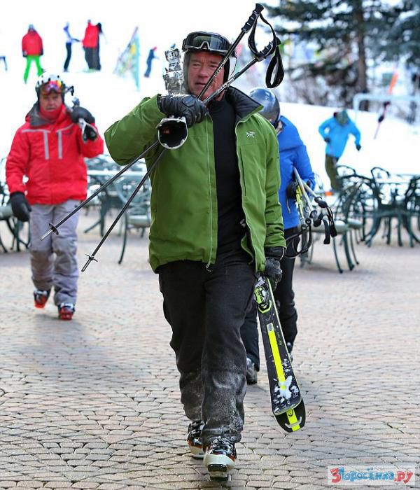 Арнольд Шварценеггер с подругой Хизер Миллиган на горнолыжном курорте Сан-Валли, штат Айдахо.