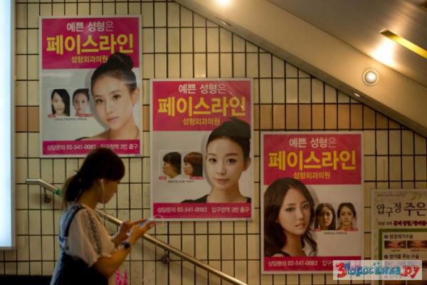 настоящее время Южную Корею считают центром пластической хирургии мира. Немало людей приезжают сюда именно для того, чтобы исправить форму какой-либо части своего тела. Современное поколение с раннего возраста начинает задумываться о пластической операции, и особенно популярным среди подростков и молодежи постарше становится изменение формы век, придающее глазам более европейский вид. Везде можно встретить фото людей, которые обращались к пластическим хирургам. В стране увеличился и рост разводов, так как супруги узнают, что кто-то из них до бракосочетания выглядел иначе и изменил свою внешность благодаря операции.