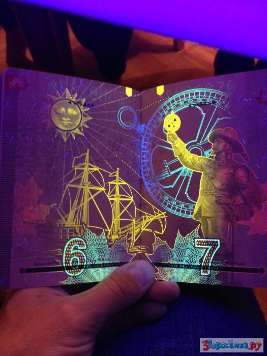 Предлагаю вам взглянуть на фотографии нового паспорта гражданина Канады в свете ультрафиолета. Это невероятно красочный документ.