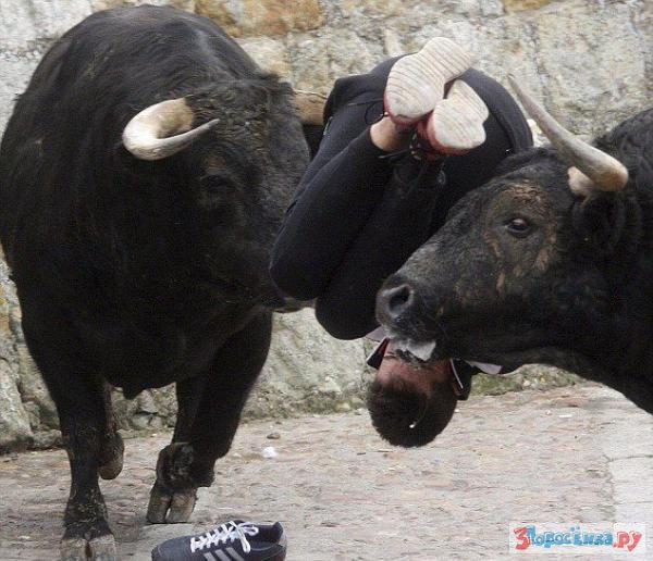 20-летний Бенджамин Миллер из штата Джорджия, США, отправился в испанский город Сьюдад-Родриго, чтобы пощекотать себе нервы на фестивале Carnaval del Toro. Вместо этого разъяренный бык как следует почесал ему задницу.