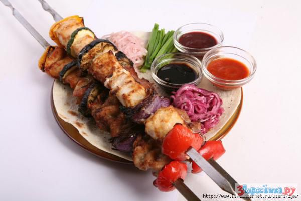 Быстрее всего - и на самом слабом жаре - готовится рыба. Чуть больше времени нужно курице. Еще больше - мясу. И если мясо можно подавать не до конца прожаренным, с кровью, то рыба и курица должны быть полностью приготовленными