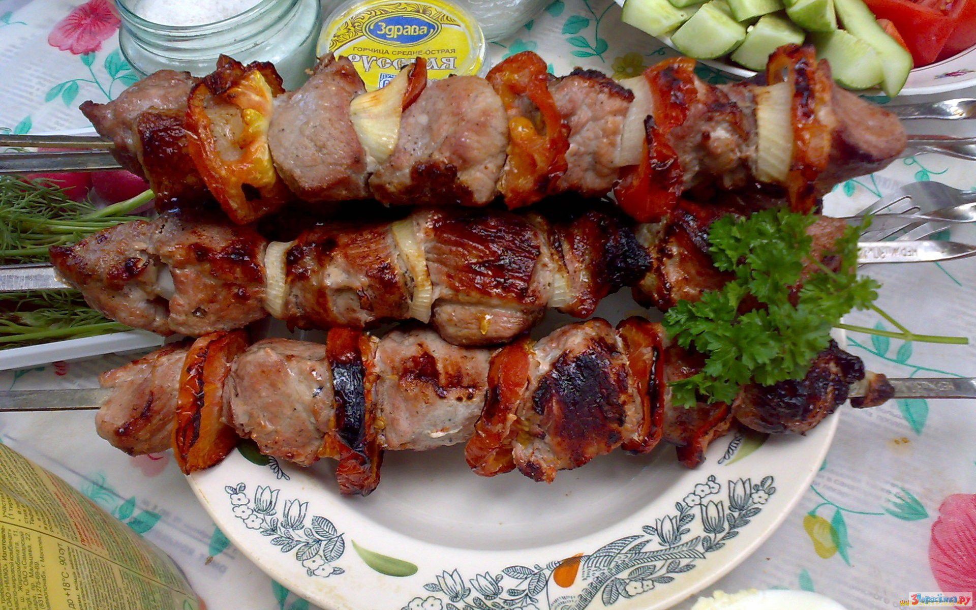 И - пожалуйста! - Никаких химических кетчупов и уж тем более майонезов. Надо наслаждаться вкусом мяса как такового, не надо его ничем заглушать. Овощи, свежий хлеб, соль, перец - этого в качестве аккомпанемента вполне достаточно.